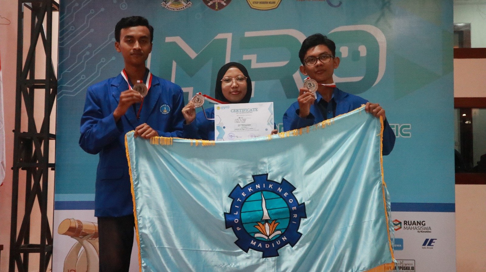 PNM – Tiga tim asal Program Studi (Prodi) Teknik Komputer Kontrol (TKK) Politeknik Negeri Madiun (PNM) berhasil membawa pulang tiga medali dalam ajang International Modern Robotic Olympiad (IMRO) 2023. Ketiganya yakni Tim AI-SBI yang meraih Juara 3 Kategori IoT, Tim ROMATRO Juara 2 Kategori Robot Transporter, dan Tim MATERO Juara 3 Kategori Robot Transporter.