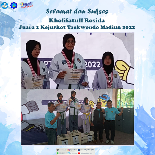 Madiun – Mahasiswa Politeknik Negeri Madiun (PNM) sukses menyabet Juara 1 pada Kejurkot (Kejuaraan Kota) Taekwondo Madiun Tahun 2022. Kemenangan tersebut berhasil diraih oleh Kholifatull Rosida, mahasiswa Program Studi Teknologi Informasi PNM.