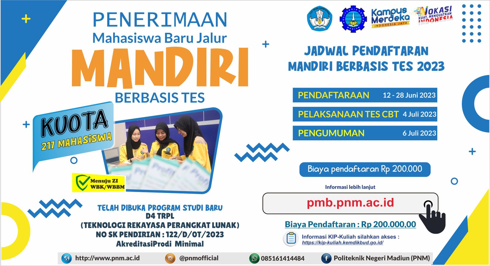 Informasi Jalur Mandiri Berbasis Tes 2023 Politeknik Negeri Madiun