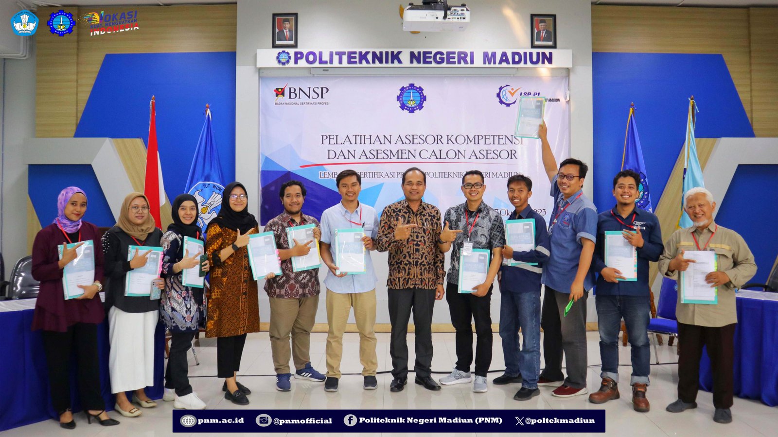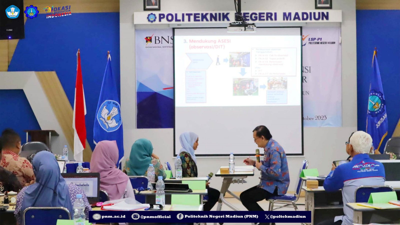 PNM - Lembaga Sertifikasi Profesi (LSP) P1 Politeknik Negeri Madiun (PNM) menggelar kegiatan bertajuk “Pelatihan Asesor Kompetensi dan Asesmen Calon Asesor” pada 3-7 Oktober 2023. Bertempat di Ruang Kuliah Bersama Gedung C Kampus 2 PNM, pelatihan selama lima hari tersebut diikuti oleh 21 dosen PNM.