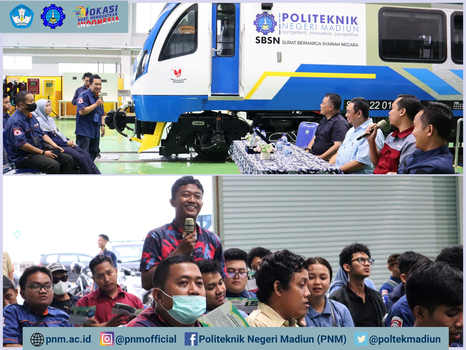 Politeknik Negeri Madiun (PNM) kembali menerima kunjungan dari komunitas pencinta kereta api. Kali ini dari Semboyan Satoe Community yang merupakan komunitas pencinta kereta api berbasis di Yogyakarta dan Solo pada Kamis, (11/05). Bertempat di Gedung Laboratorium Perkeretaapian PNM, kunjungan tersebut diikuti oleh sekitar 50 orang anggota Semboyan Satoe Community.