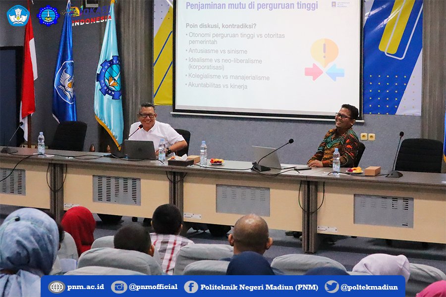 Pusat Penjaminan Mutu dan Pengembangan Pembelajaran (PPMPP) Politeknik Negeri Madiun (PNM) menyelenggarakan Workshop Sistem Penjaminan Mutu Internal (SPMI) dan Pembekalan Audit Mutu Internal (AMI) pada Selasa (18/07). Kegiatan yang bertempat di Auditorium Gedung Budi Tjahjono Kampus 1 PNM tersebut diikuti oleh ketua jurusan, sekretaris jurusan, koordinator program studi, serta gugus kendali mutu prodi.