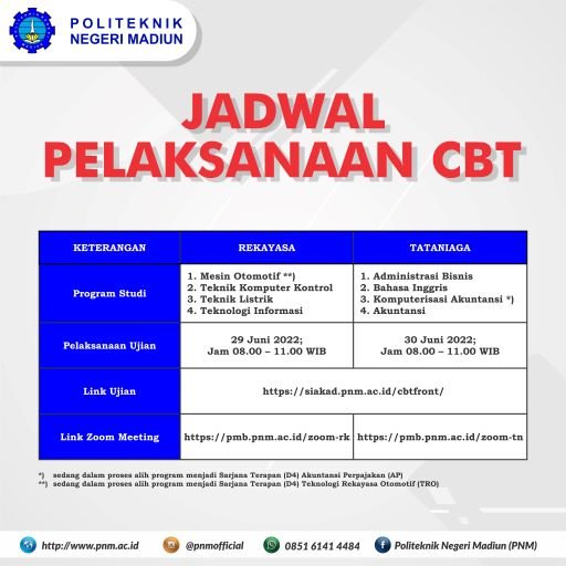 Attached below is information on the implementation of the Madiun State Polytechnic SBMPN CBT which will be held on 29 - 30 June 2022