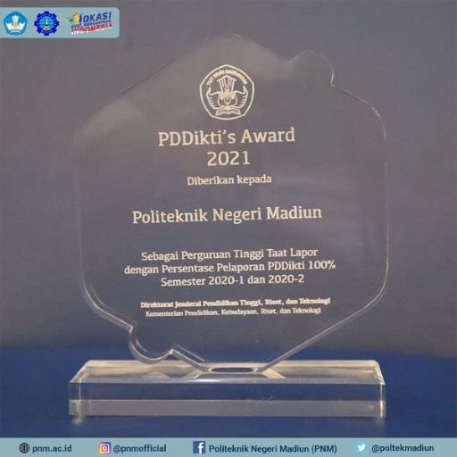 In 2021, Madiun State Polytechnic (PNM) was one of the universities that received the 2021 PDDikti's Award. PNM received the title of "Reporting Compliant University with a PDDikti Reporting Percentage of 100% for the 2020-1 and 2020-2 Semesters".