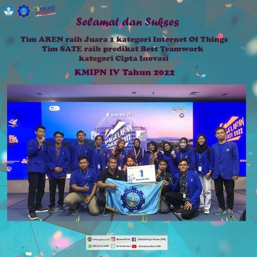 PNM sent four teams that qualified as finalists and were spread across three KMIPN IV categories. Among them are the BREM Team and AREN Team (Internet Of Things category), AE-Techno Team (E-Government category), and SATE Team (Innovation Creation category). Of the four teams, the AREN Team, guided by Sulfan Bagus Setyawan, S.ST., M.T, won 1st place in the Internet of Things category. Meanwhile, the SATE Team is guided by MH. Ramdhani Ismar, S.ST., M.T. won the title of Best Teamwork in the Innovation Creation category.